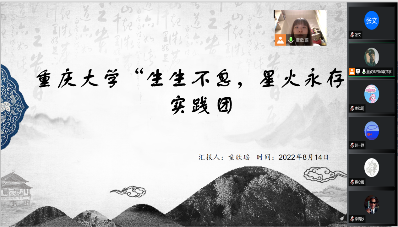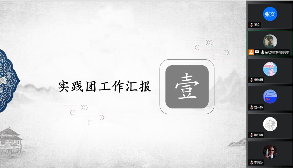 会议分为三个部分。首先,童欣瑶同学代表实践团进行工作汇报,总结了此次暑期社会实践的工作成果与成员收获。