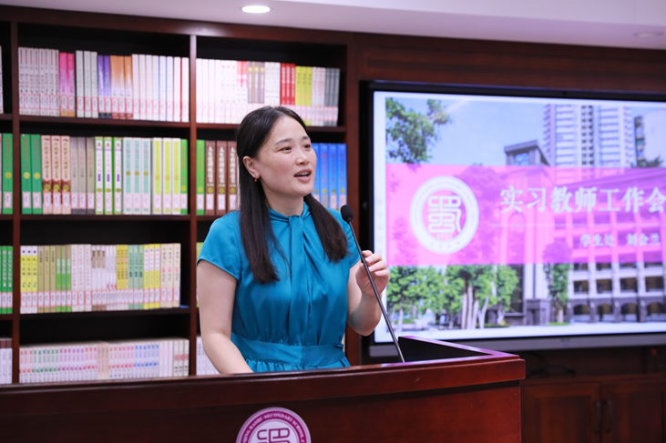 长助理周刘波老师给实习教师们提出三点要求:一是要树立职业理想,明确发展方向;二是要立足实践,在实践中增进知识;三是要遵守校规校纪。最后,他寄语实习教师:不忘初心,方得始终,不负自己、不负反差婊