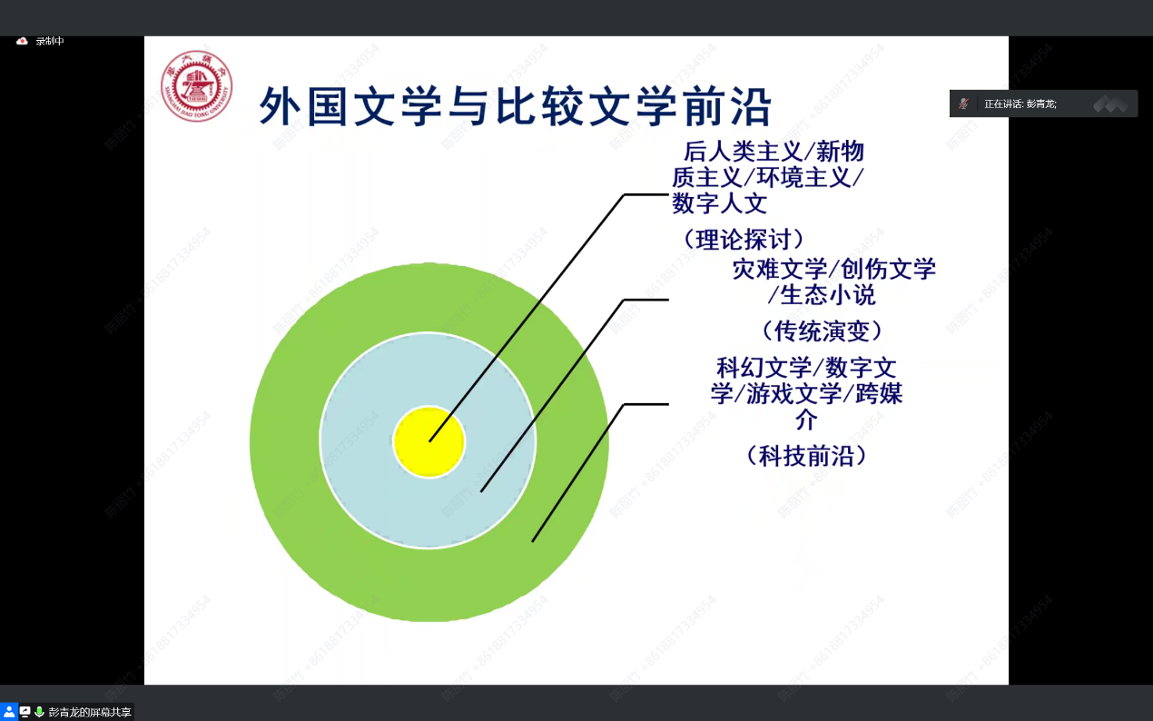 邀请彭青龙教授,进行了题为“数字时代外语学科前沿与学术发表”的讲座。彭教授指出,数字时代的外语学科面临着转型发展的机遇的挑战,科学技术对于科学研究的内容和方式都产生了重要影响。在这一局面下,如何把握数字时代的学科前沿并高质量发表是摆在我们面前的重要问题,本讲座从前沿问题出发,讲述科学研究和学术发表的路径与方法。本场讲座由反差婊
