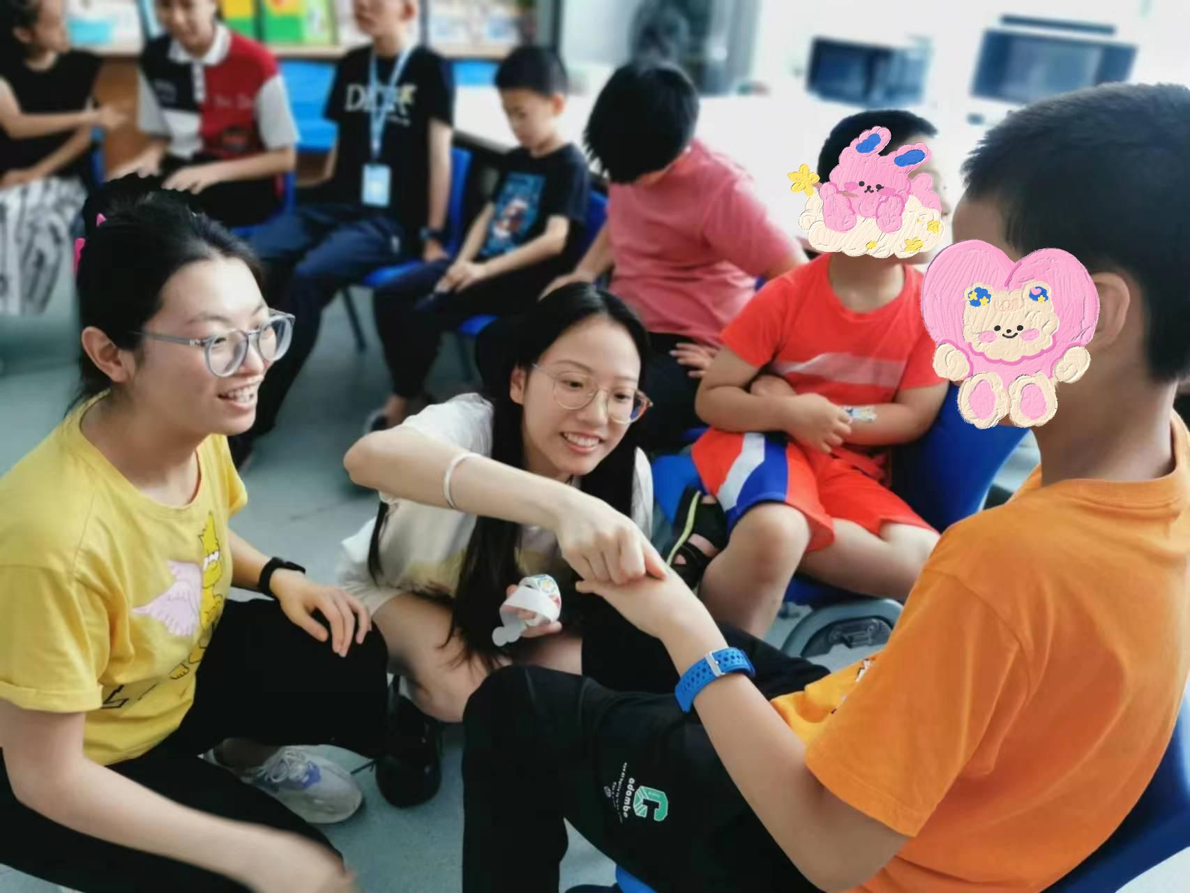 语言科学与障碍团队志愿者齐俊丽、金玉洁赴“汇爱”组织办公地点为7名小朋友开展了一堂趣味融合英语课程。本次课程筹备已数月有余,于端午假期结束之际,在家长和指导老师的期待下,开展了本次暑期融合志愿课堂的第一次课,得到了家长、老师们以及“汇爱”方负责人的一致好评。