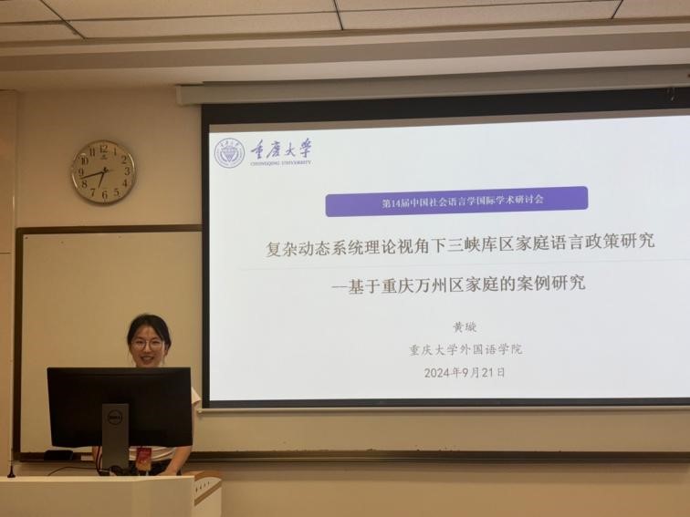 20日的主旨发言中,赵荣晖、田海龙、丁建新、Robert Blackwood等多位教授从多个维度深入探讨了如何开展社会语言学的研究与实践。在平行论坛上,黄璇做了题为“复杂动态系统理论视角下三峡库区家庭语言政策研究-基于重庆万州区家庭的案例研究”的发言,该研究获得了重庆市研究生科研创新项目“复杂动态系统理论视角下三峡库区家庭语言政策研究”(项目号:CYS21040)和中央高校基金项目“新文科背景下语言学跨学科研究实践”(项目号:2022CDJSKPT26)资助,得到了与会代表的认可。
