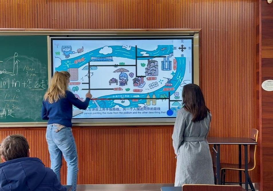 国际中文教育研究生担任老师,为意大利学生提供了综合汉语课程。课程主题包括介绍重庆和中国、问路、描述心情、购物以及传统节日介绍等,旨在通过实用汉语教学,提高学生的汉语交际能力。