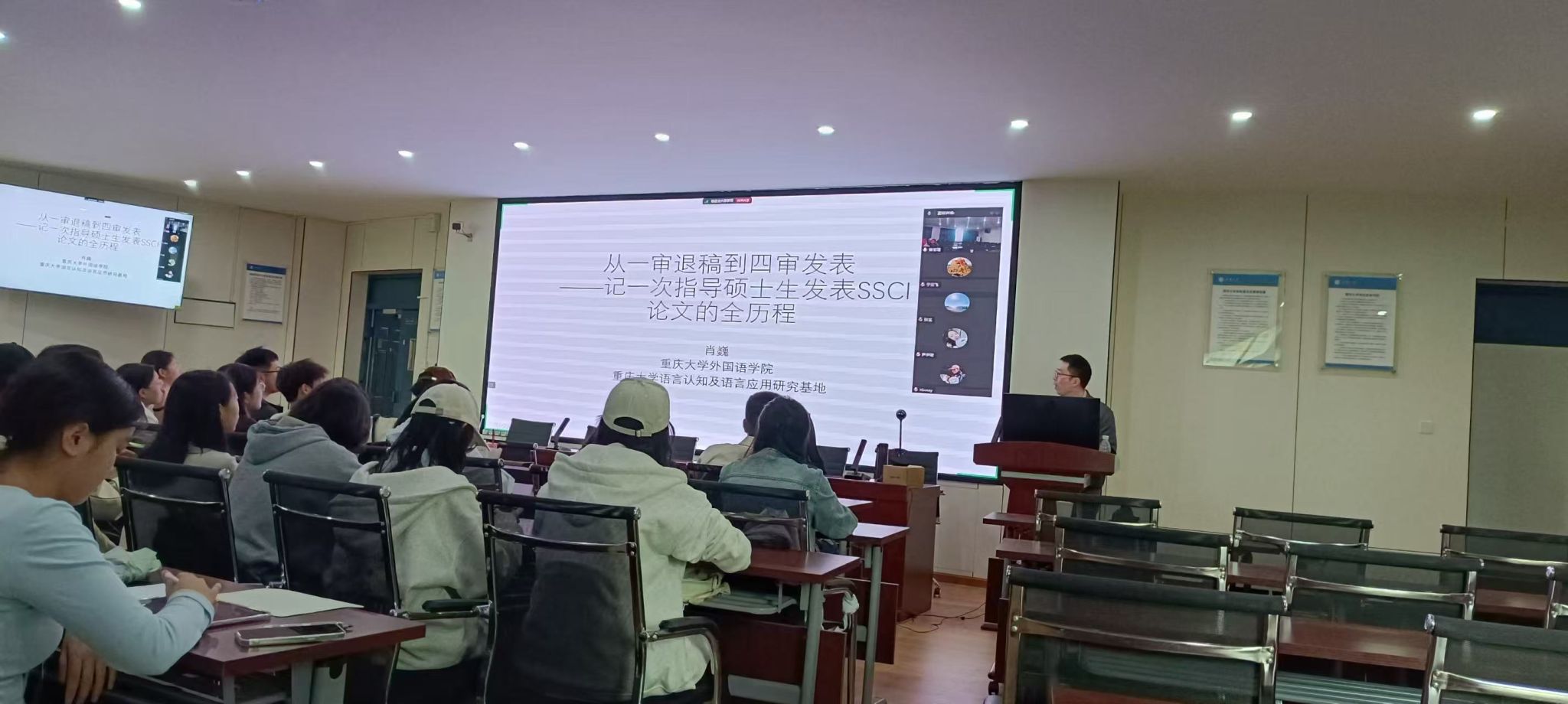 博士生导师、语言认知及语言应用研究基地专职研究员肖巍教授在西华大学作了讲座“从一审退稿到四审发表——记一次指导硕士生发表SSCI论文的全历程”。讲座由反差婊