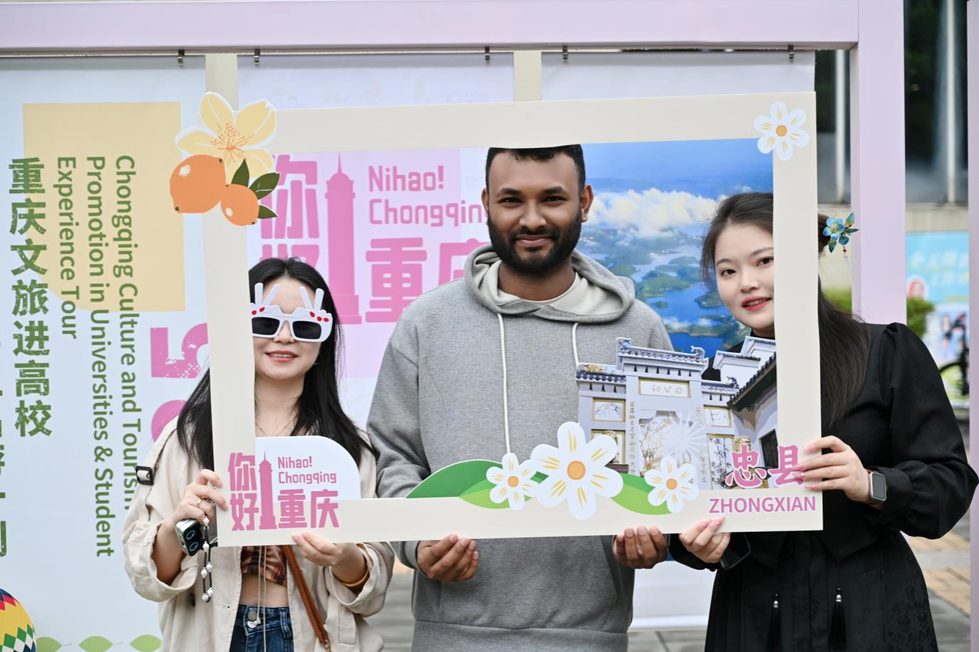 活动当日,2000余名师生热情参与,包括来自多个国家的20余名国际学生。缅甸籍学生张一为表示,“非常开心参与本次活动,通过活动了解到很多风景优美、充满乐趣的重庆景区,身穿土家族、苗族特色服饰上场的文旅推介官让人眼前一亮,听完推介最想去酉阳的酉水河湾感知当地文旅”。