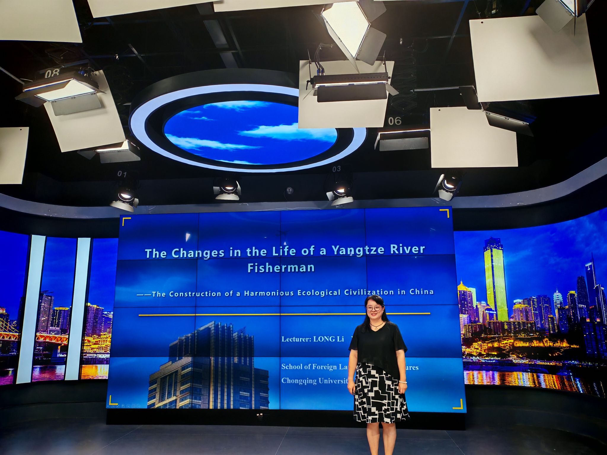 2022年12月,两位老师面向重庆市留学生作了题为《中国和谐共生的生态文明建设——以长江保护为例》的全英文讲座;2023年7月,合作编写完成教材中英文章节;2025年8月27日,两人顺利完成该章节全英文微课的录制,标志着教材内容从理论编写转向数字教材开发。