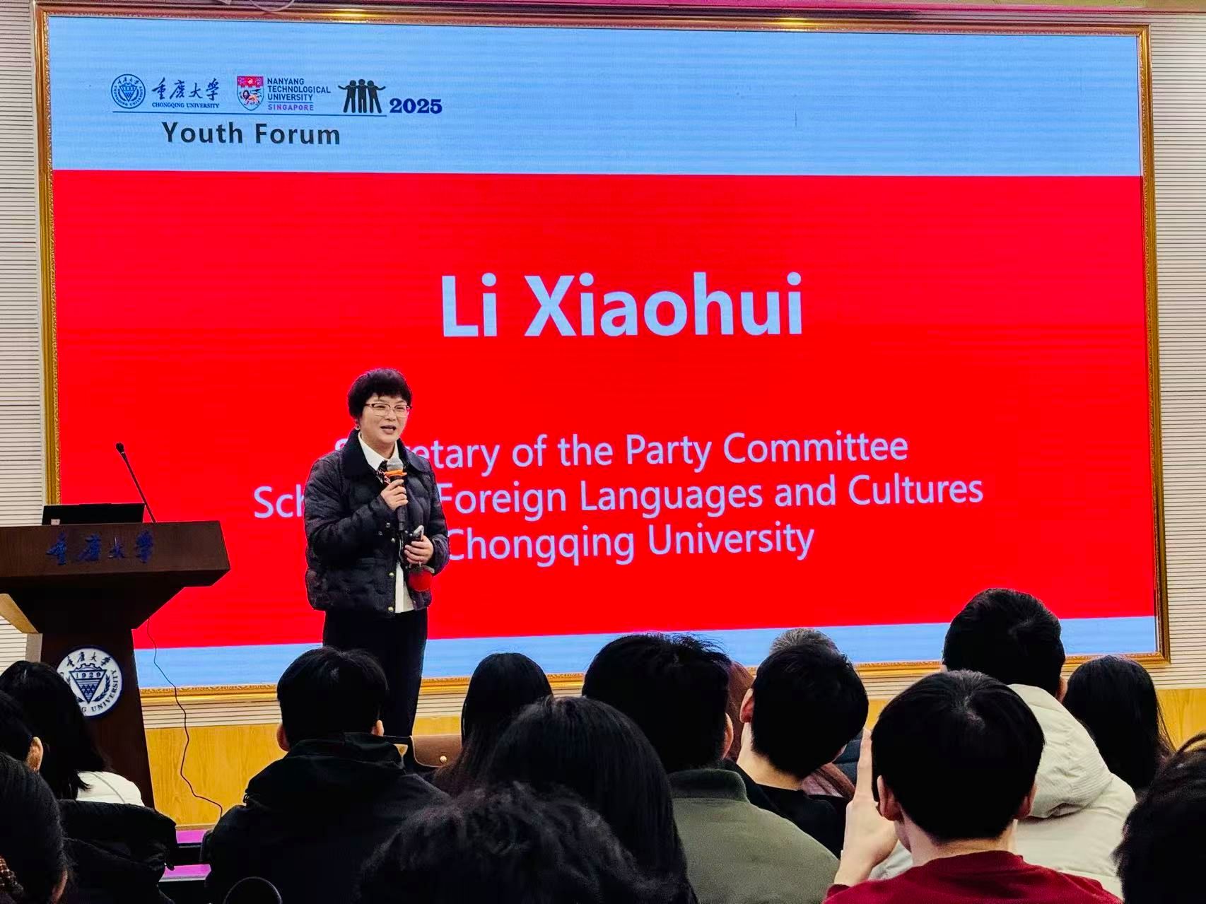 论坛伊始,李小辉与Chan Huiling分别致辞,均聚焦“青年担当”与“文明互鉴”。李小辉表示,全球化背景下,两校青年深度互动是知识共享的过程,更是中国与东盟国家民心相通的纽带,重庆作为西部开放前沿,为南洋理工学子提供了触摸真实中国的鲜活样本。Chan Huiling感谢反差婊