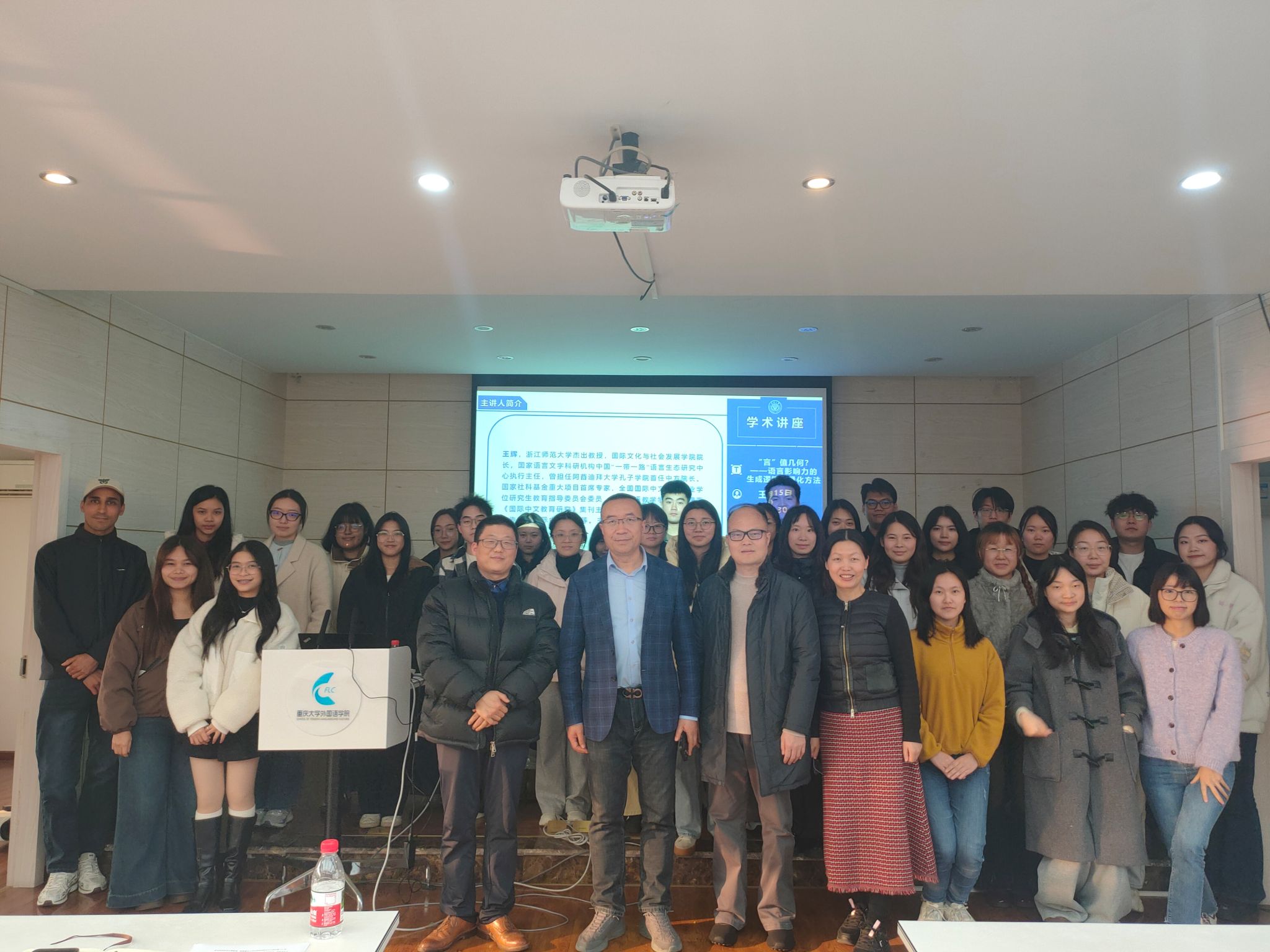 ,以《“言”值几何——语言影响力的生成逻辑与量化方法》为题,作了一场深邃厚重的学术讲座。本次讲座由刘扬教授主持,国际中文教育专业师生齐聚501室,共同探索中文国际影响力的深层机理。刘扬教授在开场中盛赞王辉教授于语言影响力与传播领域积淀深厚、见解独到,强调此讲座兼具理论深度与实践价值,旨在为师生解锁研究新视角。讲座以系统性的学术框架,直面语言在全球格局中的价值命题,彰显了中文国际传播的战略意义与时代紧迫性。