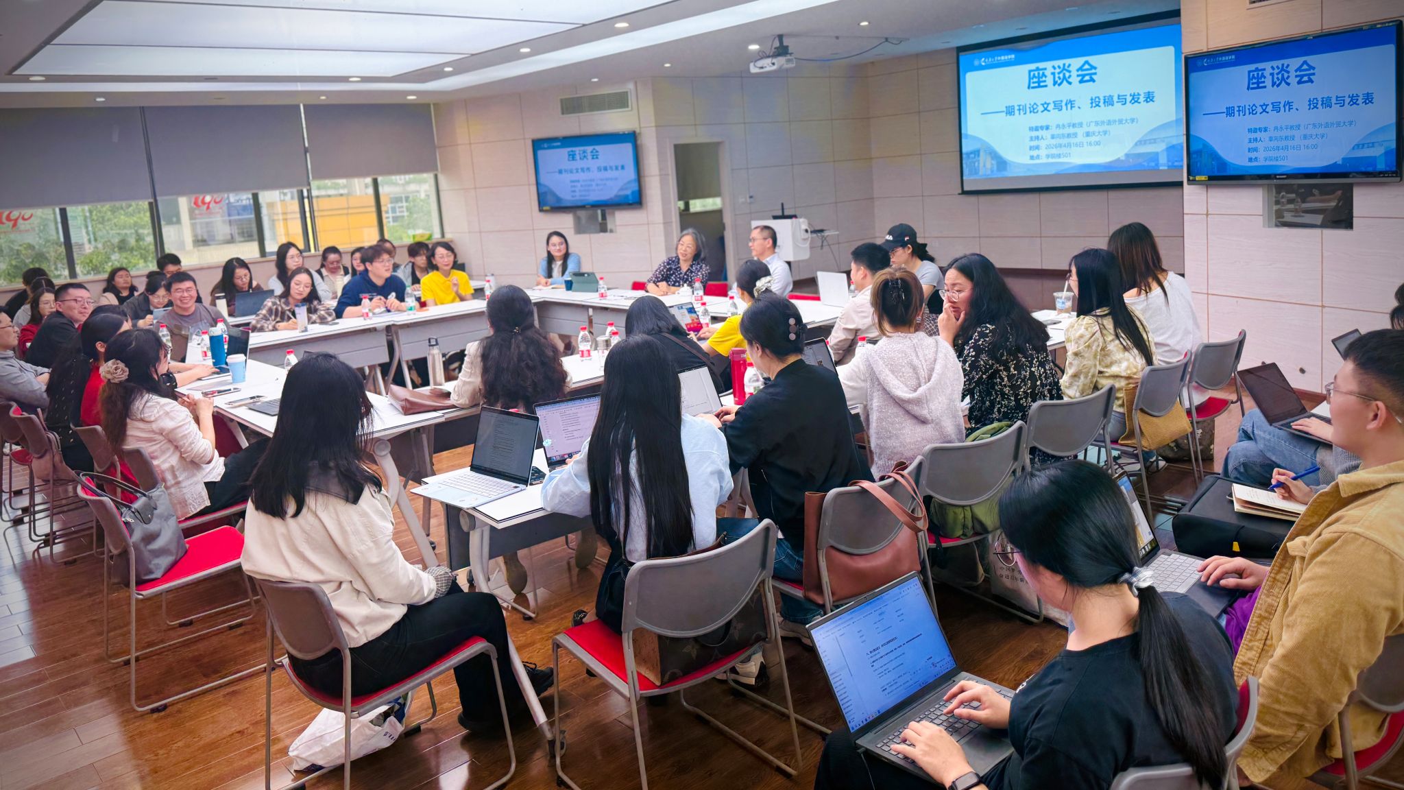 ,在501学术报告厅作题为“期刊论文写作、投稿与发表”的学术座谈。座谈会由辜向东教授主持。