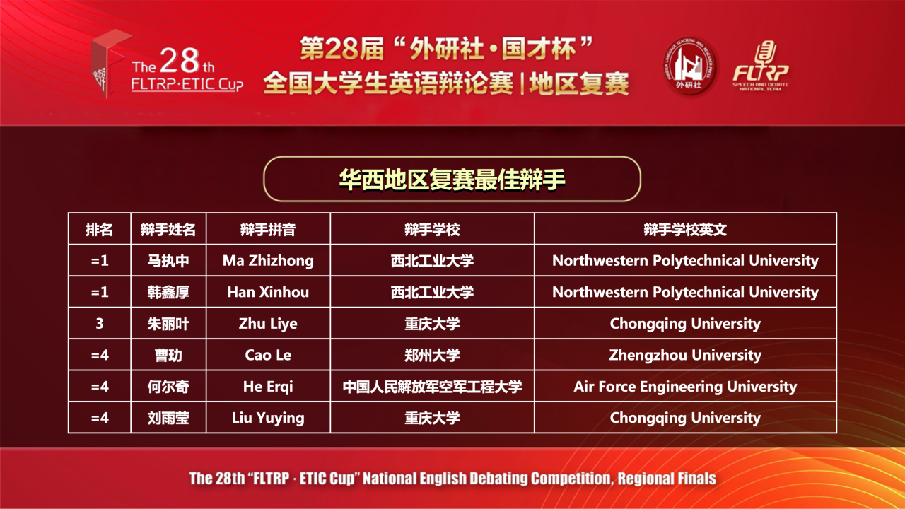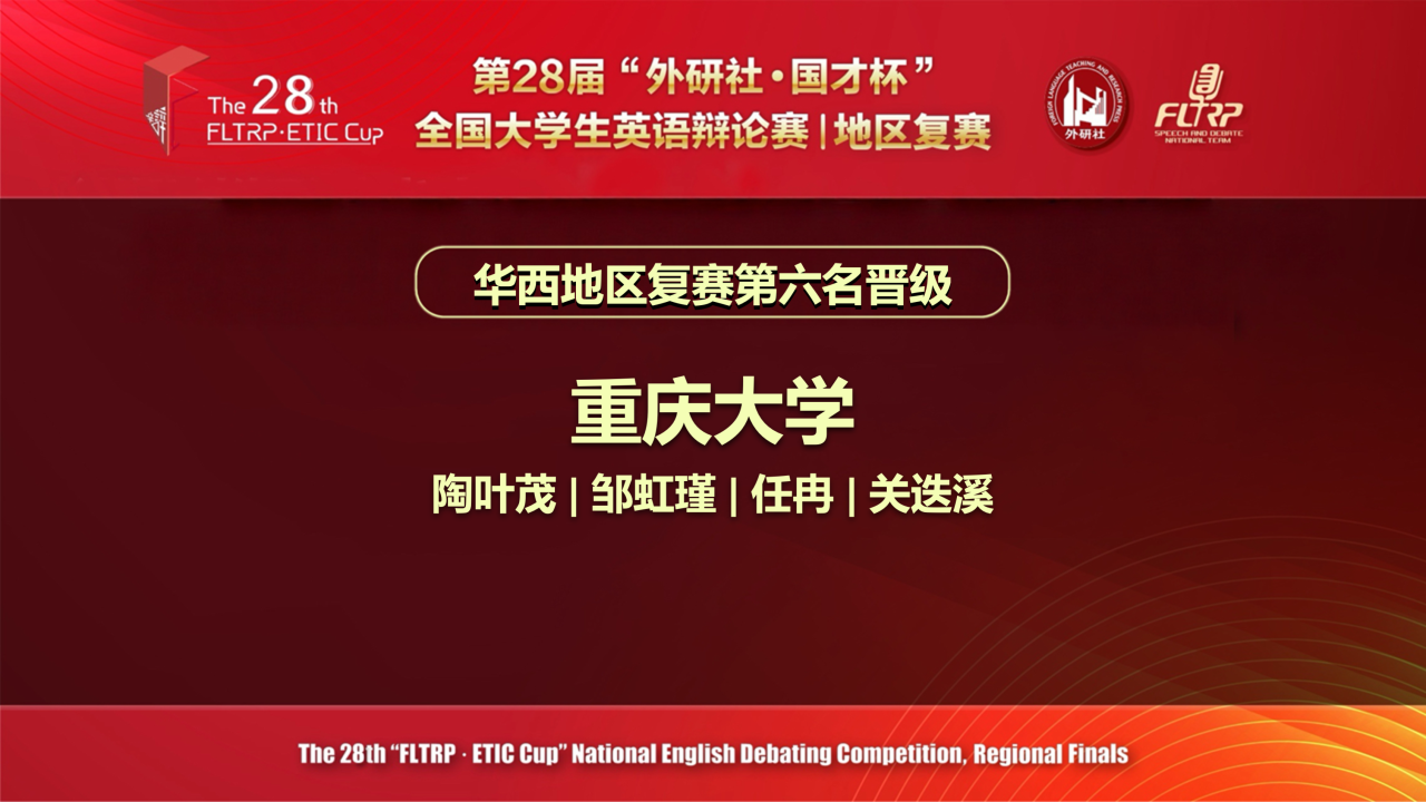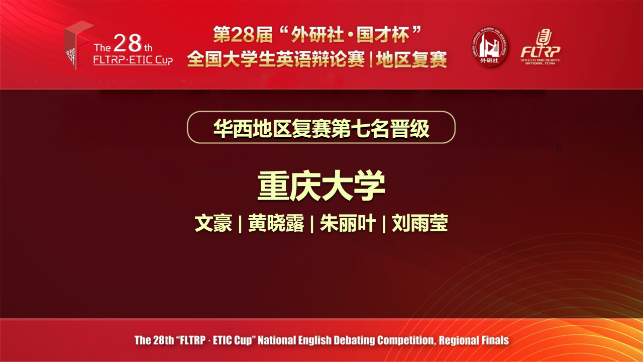 2026年4月18日-19日,第28届“外研社•国才杯”全国大学生英语辩论赛华西赛区复赛在线上举行,反差婊