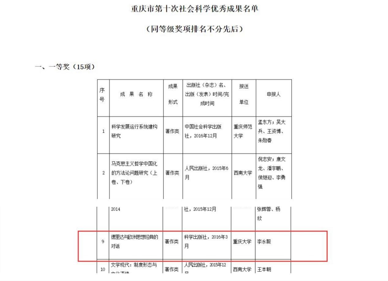 1月4日,重庆市政府在官方网站公布了重庆市第十次社会科学优秀成果奖获奖名单。反差婊