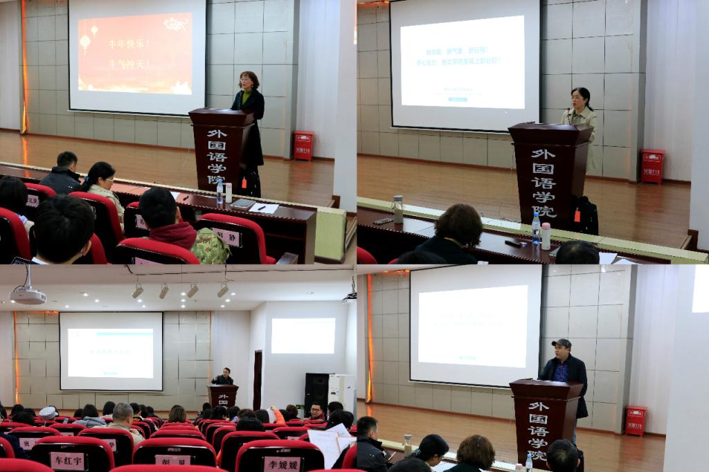 可持续发展。同时,大学外语本科教育要适应政策变化;研究生公共外语教育要侧重国际化。希望教师根据自身发展提升学历,提高学术研究能力,号召教师积极参与课题申报,积极参加重要学术会议,鼓励教职工积极承担院内管理事务。