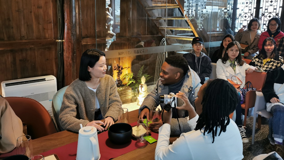 活动以“中国茶文化”和“东方花道”为主题展开。在中国茶文化分享部分,“中外人文交流苗品记行业示范基地”创始人苗伟老师为同学们讲解了中国茶文化以及重庆茶文化的历史。苗伟老师通过生动形象地分享与互动,以中国茶文化的起源为切入点,讲解了中国各个时期茶文化的发展状况和特点。随后通过中国“四大茶区”和“六大茶类”的分享,进一步加深了同学们对于中国茶文化的认知。在互动部分,大家亲手为自己冲泡了“永川秀芽绿茶”。“香飘十里外,味酽一杯中”,茶文化在我国有着悠久的历史,而伴随着历史的发展,茶已经不仅仅作为国人的日常饮食而存在,更成为了中国文化国际传播中鲜明的文化象征。