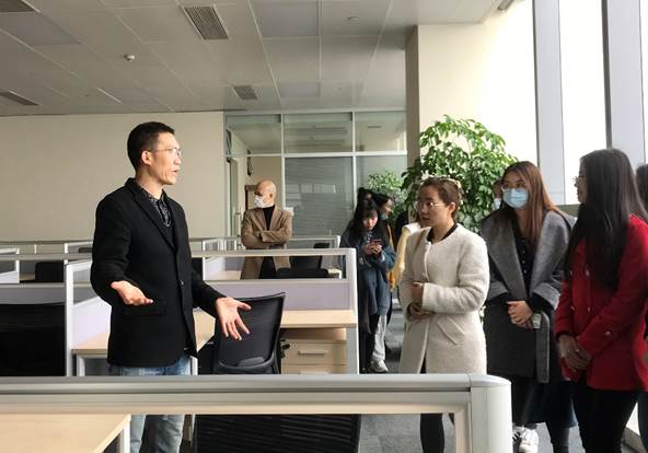 师生一行在“重教国际”办公室周主任的带领下,参观了位于南岸区希尔顿酒店顶楼的重庆市教育国际交流协会服务中心,对公司办公场所、员工工作情况、工作环境、工作氛围有了直观感受和切身体验。