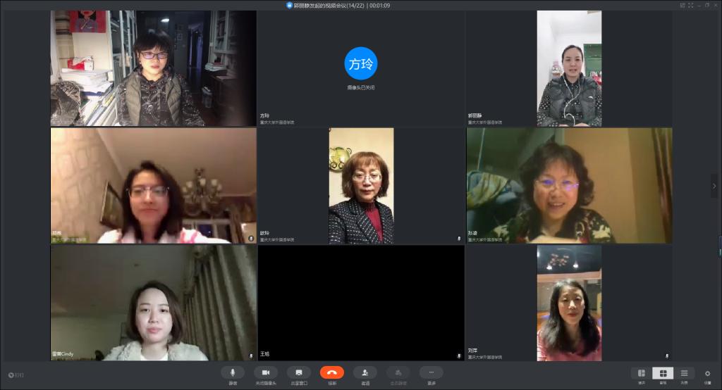 3月24日晚20:30-22:00大学英语创新课程组通过钉钉群视频会议举行了主题为“‘以学习为中心’的评学经验分享”线上教研活动。本次教研活动由郭丽静老师主持,创新课程组全体任课教师参加,余渭深教授作为特邀嘉宾也参加了本次教研活动。
