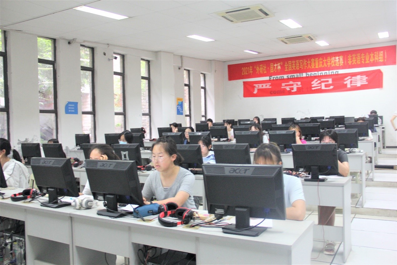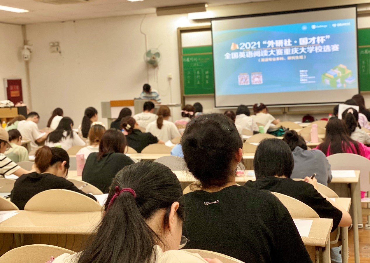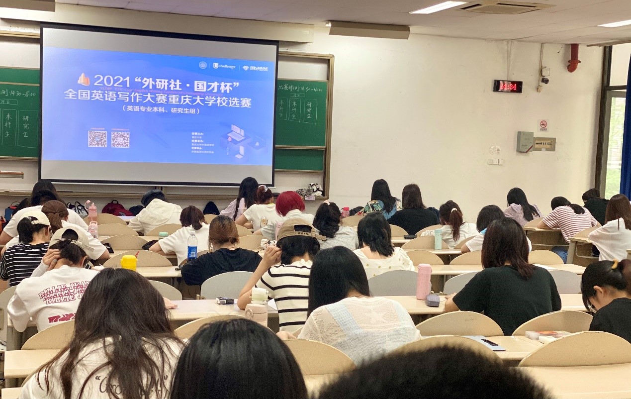 写作大赛和阅读大赛于6月10日下午、晚上分组别在虎溪校区和A区同时进行。写作赛题题型包括议论文、说明文,选题结合时代事迹和时事热点,内容或涉及描述分析流程图,或论述是否认同“功过只能由后人评判,同时代人无法评判”的观点,或畅谈对国产电影发展、网络热词“躺平(tangping or lying flat)”的理解,或阐述对“袁隆平精神“的理解等等。赛题的视角着眼考查选手分析论述、思辨能力,引导学生培养爱国情怀、工匠精神、社会责任感等优秀品质。