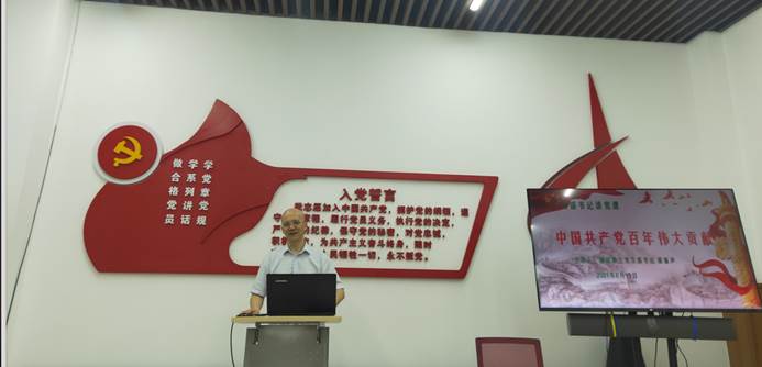 颁奖仪式结束后,翻译硕士支部书记游振声老师以“中国共产党百年伟大贡献”为题为本支部全体党员同志上了一堂专题党课。