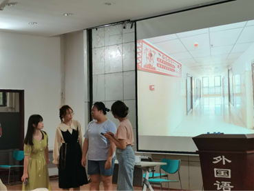 园“内卷”现象,以幽默的方式引发了现场观众的思考。而英语4班同学的《人上人上人》,同样也直指“内卷”现象,讲述三名大学生为了争夺保研资格分别不择手段的故事。最后由英语3班同学带来《我的重大学生手册果然有问题》,以游戏通关的形式,融合学生手册中的关键内容,给同学们上了生动的一课。