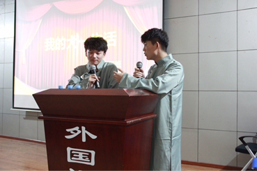 主持人组织现场观众第二次抽奖,共4位幸运观众获得收纳盒奖品。随后由邹江同学和王建明同学带来了相声表演《我的大一生活》,使同学们在愉快的氛围中得以放松。