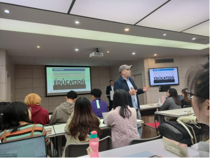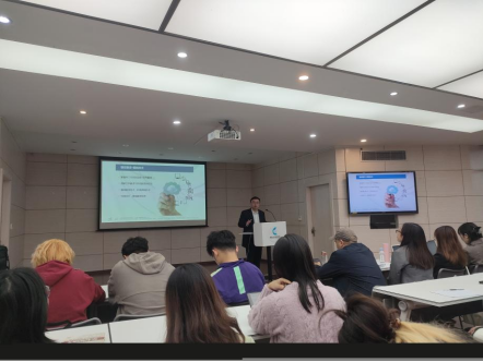 首先,毛隽博士向同学们介绍了上海文化贸易语言服务基地和北京文化贸易语言服务基地、专家委员会。