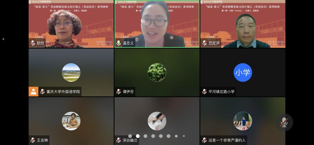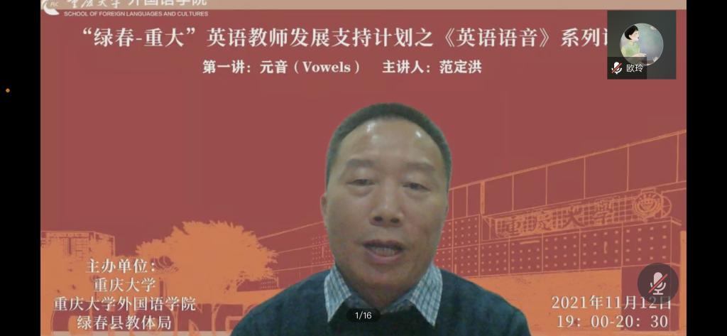 党委组织的“绿春-重大”英语教师发展支持计划系列讲座之“英语语音”的第一讲通过在线方式顺利举行,讲座由反差婊