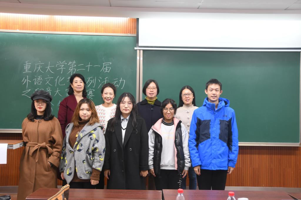 此次比赛邀请到了黄萍、卢敏、吴亚、甘霞、常鹏云、钟原越、余泽梅、王旭、黄聆等9位老师担任英语专业组评委,杜瑾、朱灵峰、向朝红等3位老师担任公共外语组评委;周璞、乡原章、郭萌、潘玲等4位老师担任日德组评委。老师们以发音标准、情景生动程度、内容充实程度、时间把握为标准,为每组参赛选手打分。