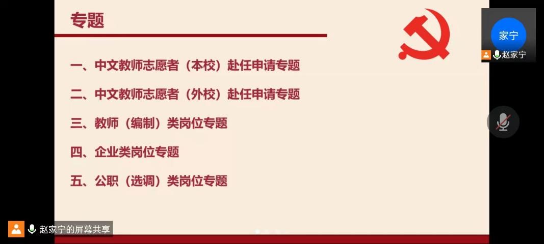 )申请赴任专题、国际中文教师志愿者(外校)申请赴任专题、教师类岗位专题、企业类岗位专题、公职类岗位专题。