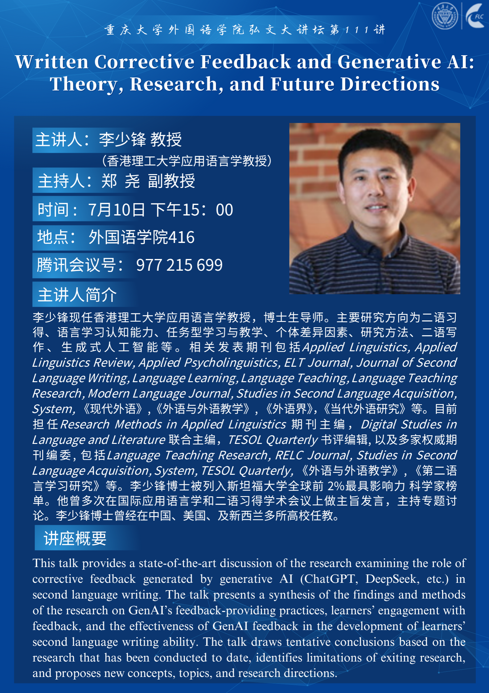 讲座|Written Corrective Feedback and Generative AI: Theory, Research, and Future Directions