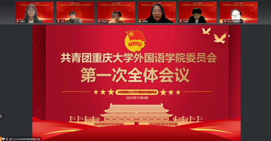 第十六届委员会第一次全体会议于2022年12月4日下午4时于腾讯会议线上召开。新一届团委委员会成员汪俣婧、李紫薇、梁兰云、王琦、邓沧怀、周文垚、童欣瑶、于宗驹、范春娇参加会议。委员会成员梁兰云主持会议。