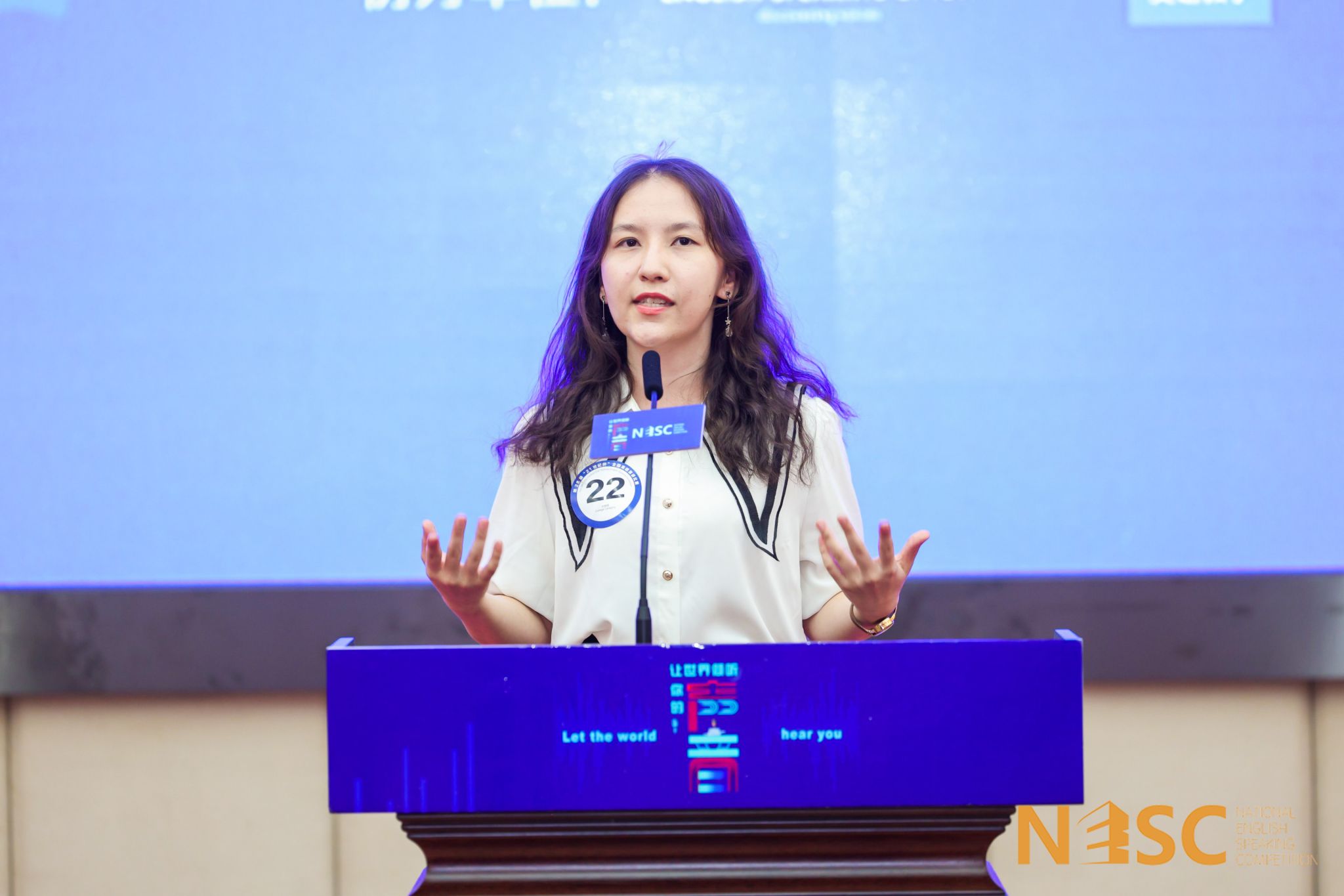 两位选手紧扣已备主题,或以家乡喀什承载驿站枢纽重任开篇讲述文明交融带动发展,或以个人阅读《圆明园的毁灭》所感为切口对比论证多样文明引导进步,以小见大、以点带面循序渐进道出对兼容并蓄的文明重要性的理解。在时间紧凑的即席演讲中,两位选手分别通过科技发展让生活更便利的观点回应了社交传媒受众发展趋势,援引“AI对人类是否存在着威胁”的论题提出要辩证看待电子科技的利弊,先后从不同角度探讨科技影响生活的社会现象。面对评委犀利的提问,他们着眼自己的演讲观点,准确理解问题内涵,泰然自若、沉着应答,以优美的发音、独树一帜的精神风貌为本次比赛画上句号。