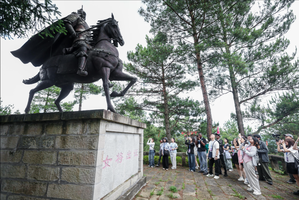 在万寿山景区内,听完导游介绍的“中国历史上唯一载入正史将相列传的女将军秦良玉”的传奇故事,学生们感叹不已:这位女将军堪比花木兰!