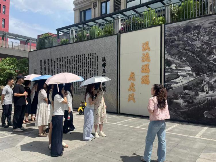 在学智社区党委副书记赖雪晴的引导下,翻译硕士党支部党员先后参观了社区党群服务中心的24小时便民服务驿站、妇女之家及溪畔会客厅等功能分区。参观过程中,支部党员深刻体会到学智社区为提升居民幸福感、归属感的治理创新实践。