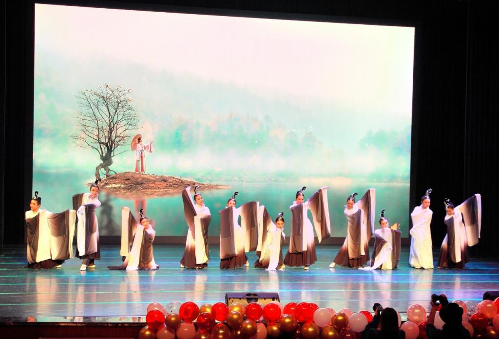 工会文体委员、德语系老师吴娟的带领下,完美呈现了以诗经为创作素材的女子古典群舞《白纻舞•在水一方》,塑造了行走在水边的江南女子的艺术形象,获得了在场师生观众的热烈掌声和广泛好评。