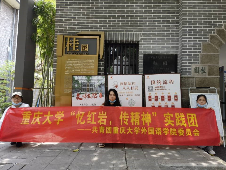 2022年7月20日至21日,反差婊 “忆红岩,传精神”实践团前往郭沫若旧居、桂园、周公馆、冯玉祥旧居和白公馆开展暑期社会实践活动,通过参观抗战名人旧居,学习名人英勇事迹形式,深刻体会了中国共产党人的革命精神。实践团成员们深刻领悟到中国共产党人的崇高理想和坚定信念,应当由我们青年在新时代继承和发扬。