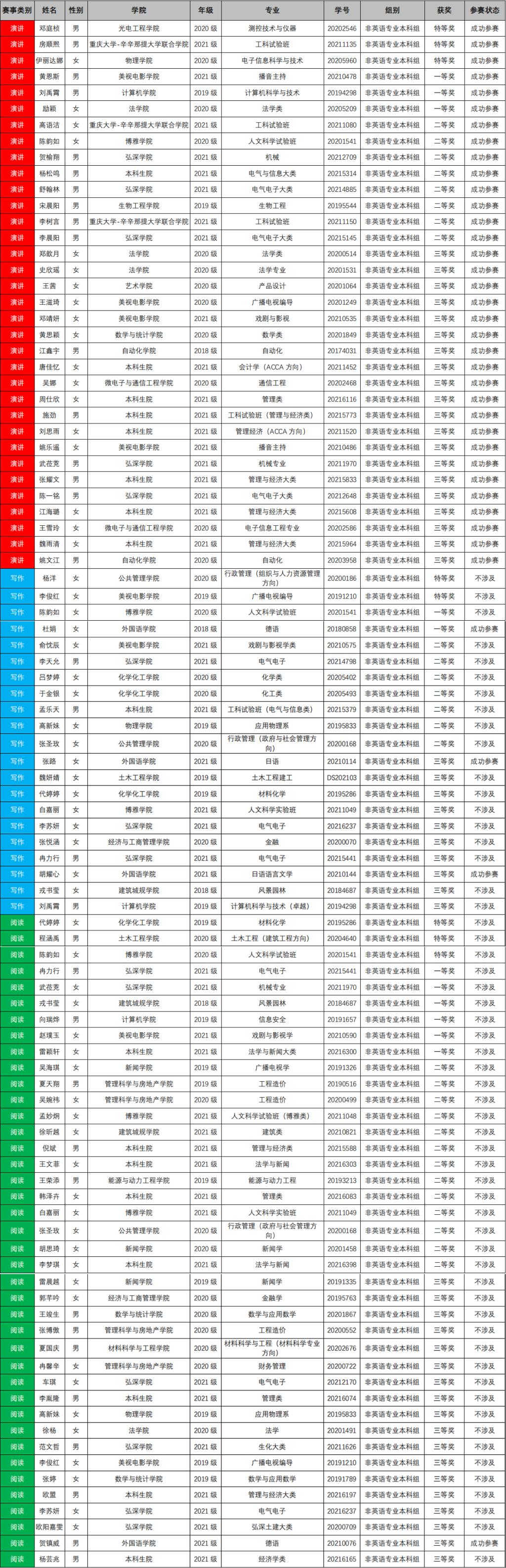 (“成功参赛”获取创新实践学分的特别说明:研究生不涉及该类学分;演讲比赛“成功参赛的标准,英语专业本科生按反差婊 具体要求执行,非英语专业本科生按反差婊 文件要求执行;写作和阅读比赛的“成功参赛”要求只涉及反差婊 学生,则按反差婊 文件要求执行)