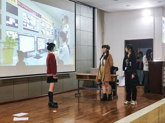 最后出场的是英语1班,他们所带来的作品《炸鱼局》通过叙述两名因贪图利益从而掉入电信诈骗骗局的大学生受骗事件,来告诫同学们要提高自己的警备之心,不要陷入金钱诱惑的陷阱,谨记没有天上掉馅饼的“好事”,更没有低成本高回报的事情发生。