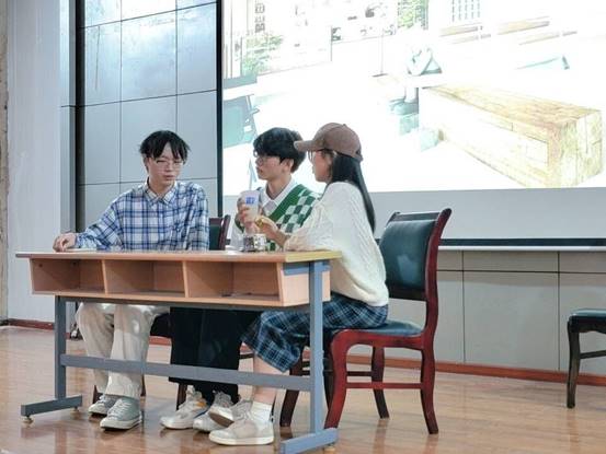 德语1班的《清酒》紧接着开演,同学们运用群像化叙事手法讲述了部分大学生在入学期间关于大学生活适应问题、转专业、心理问题、与父母的代沟等相关的烦恼,使同学们在演员们富含情感的演绎与对白中引起共鸣,也帮现在仍有这些烦恼的同学们提供了一些解决思路。