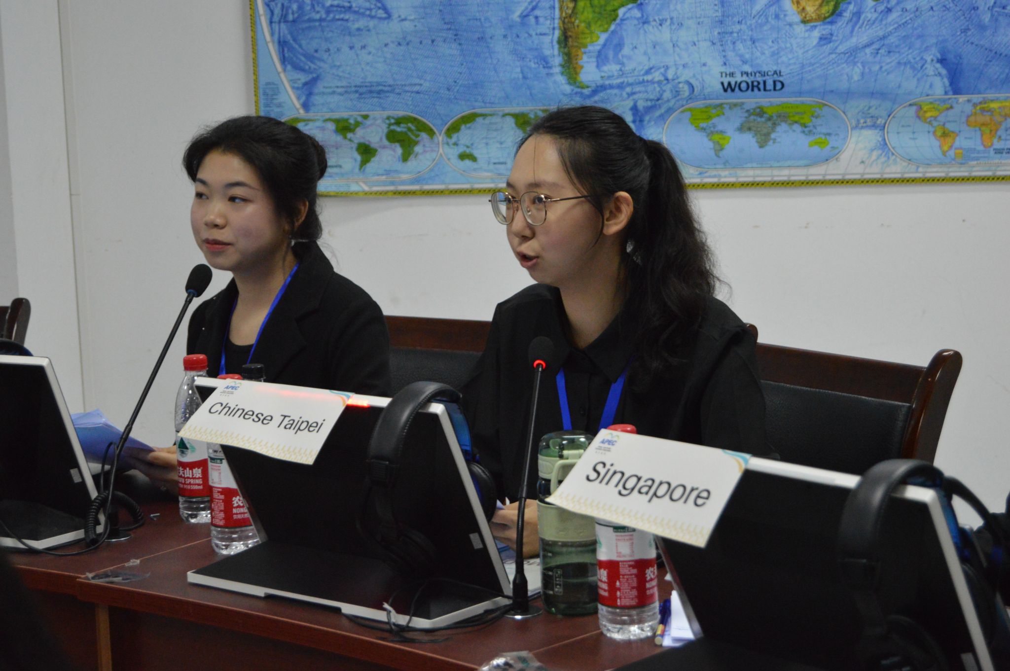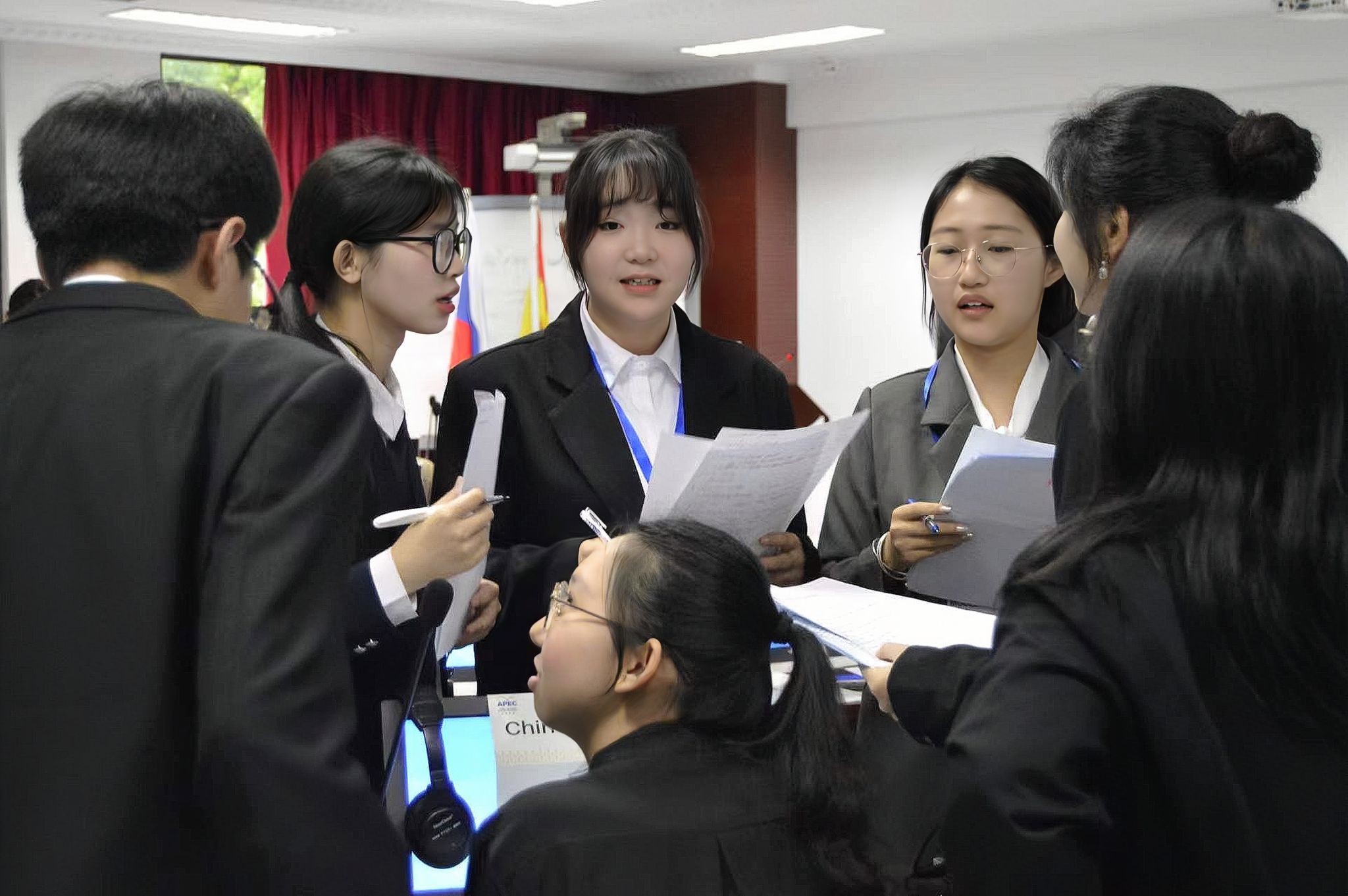 五位选手分别代表澳大利亚、加拿大、日本、中国台北、美国等5个经济体进入了同一会场,在自选主题陈述环节中三人选择女性议题、两人选择中小企业议题,从所选议题角度出发阐述包容性增长的意义。自由辩论环节中,他们紧扣此次大会主题,代入所代表国家外交官角色,深入探讨了亚太地区的经济发展趋势和挑战,并提出了许多富有创意和前瞻性的政策建议,这不仅提高选手自身的国际视野和外交能力,也为亚太地区的青年发展贡献力量。