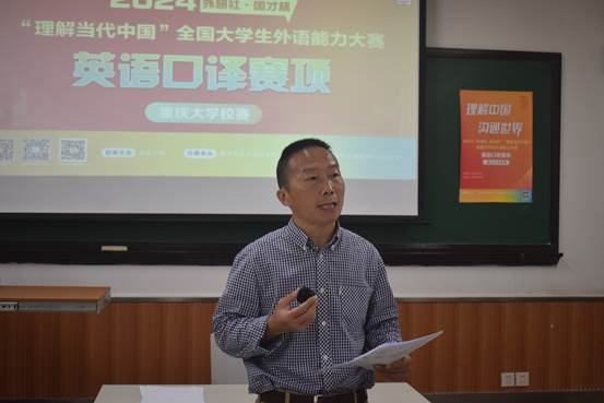 评委老师范定洪对本次比赛进行点评发言。范老师指出,此次口译比赛紧扣“理解当代中国”主题,将口译学习与习近平新时代中国特色社会主义思想学习有机地融合起来,他建议选手们以后参加此类比赛时,要提前针对比赛的主题做好准备,储备好相应专业词汇量;他提醒选手们在未来学习中加强对全球性议题的关注,增加专业术语的积累,注重平时口译台风的培养,提高听众意识。