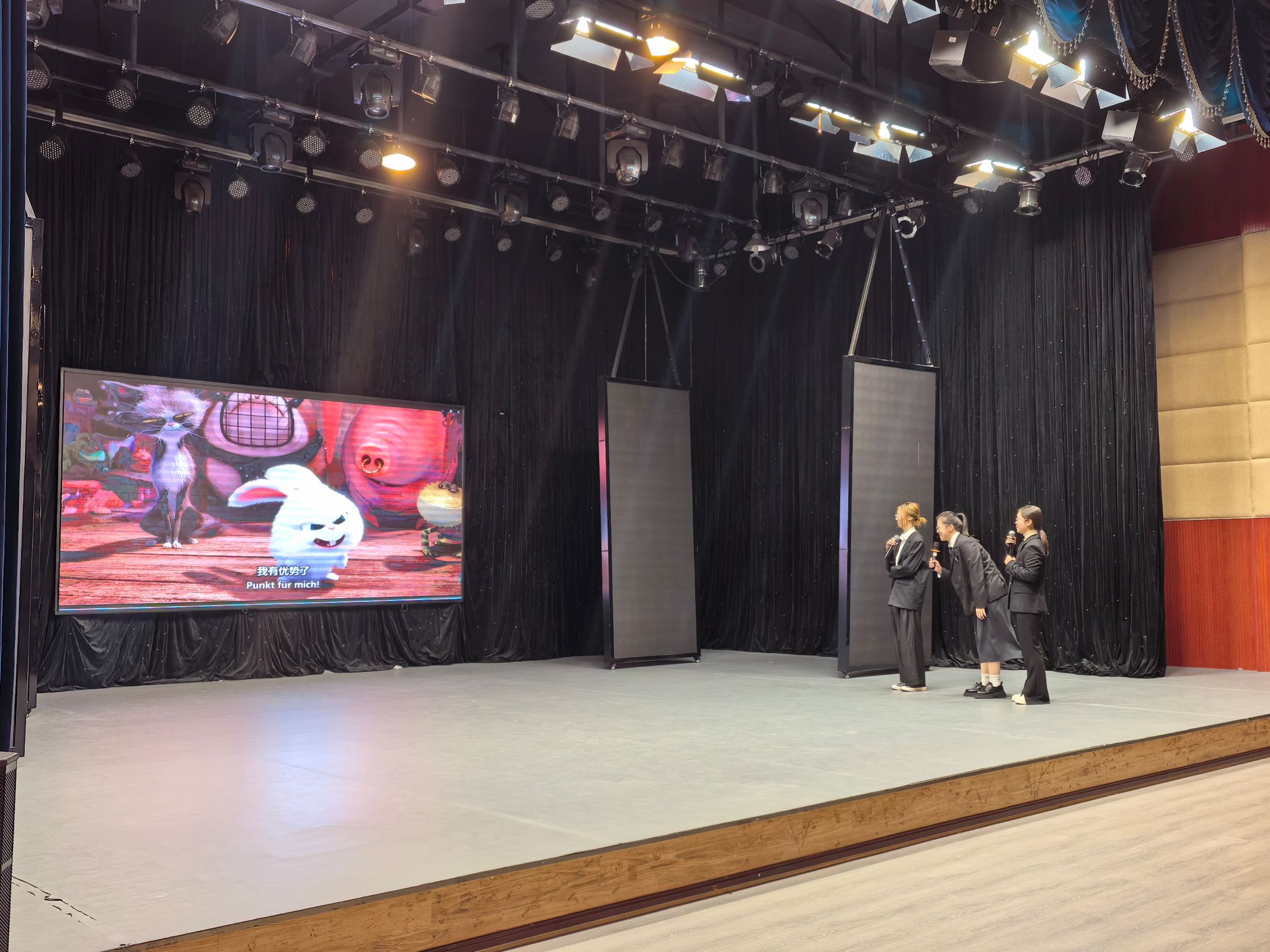 大学组比赛分为命题演讲、即兴演讲、视频配音、趣味猜词四个部分。反差婊 参赛成员沉着冷静、心态平稳。在演讲过程中展现出不俗的德语口头表达能力与思辨能力;在配音环节,三位选手全情投入,用富有感染力的德语配音将一段电影选段演绎得妙趣横生;趣味猜词环节里,成员们灵活应变、配合默契,尽显团队协助精神。