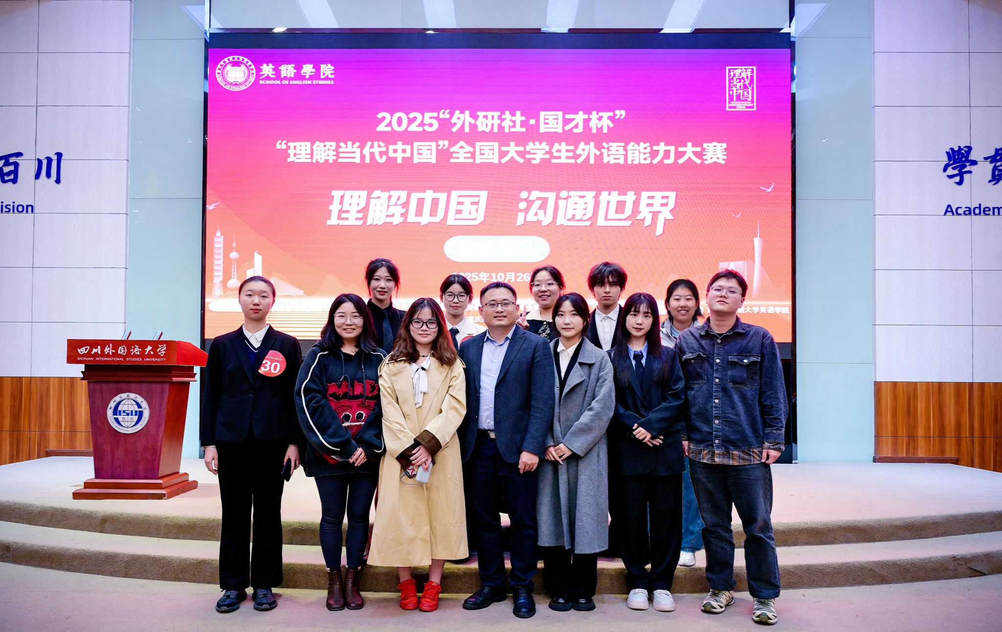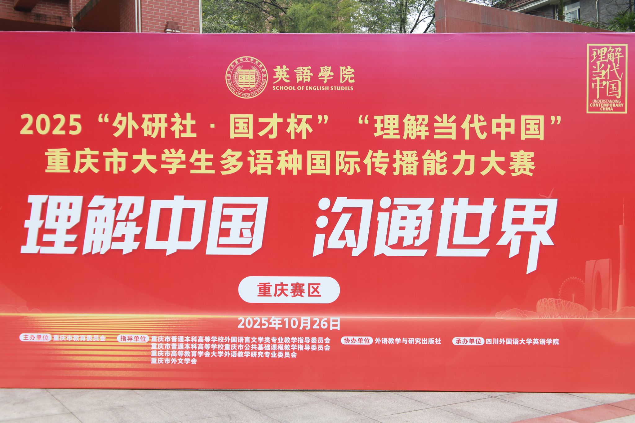 2025年10月25日-26日,2025“外研社·国才杯”“理解当代中国”重庆市大学生多语种国际传播能力大赛英语组各赛项由重庆市教育委员会主办、四川外国语大学承办,多语种组省赛各赛项于2025年10月18日由外语教学与研究出版社线上承办,国际中文组中文短视频由北京外国语大学和北京语言大学联合主办、外语教学与研究出版社承办。