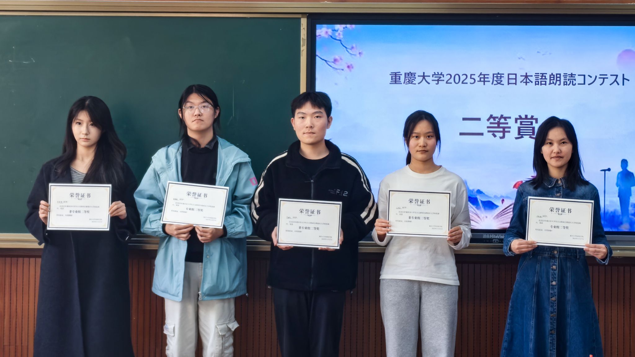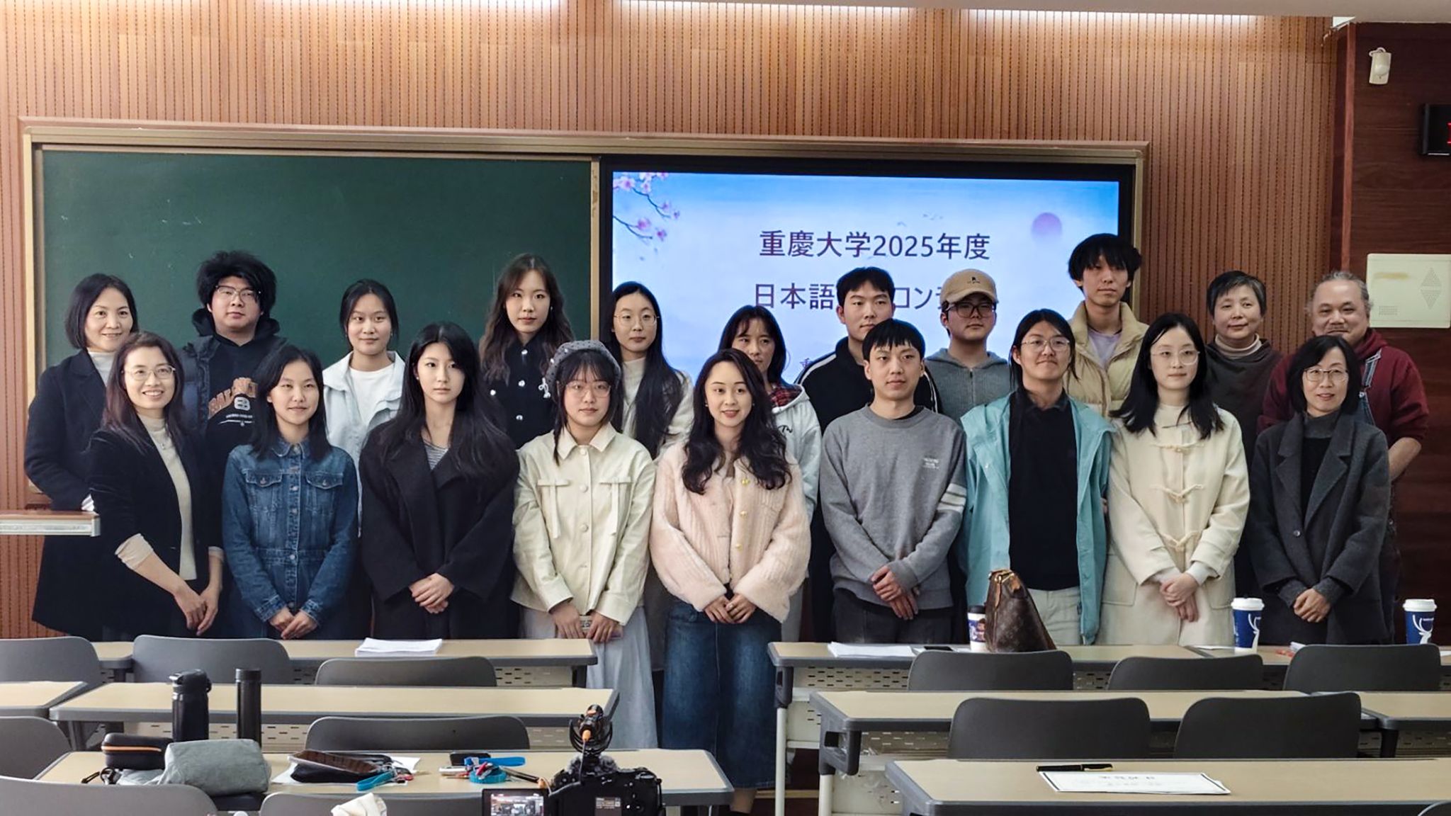 选拔赛在科学城校区虎溪校园第一教学楼D1201举行。本次比赛吸引了来自多个专业的日语学习者积极参与,王萍、李中平、周璞、杨庆庆四位日语专业教师担任本次比赛评委。