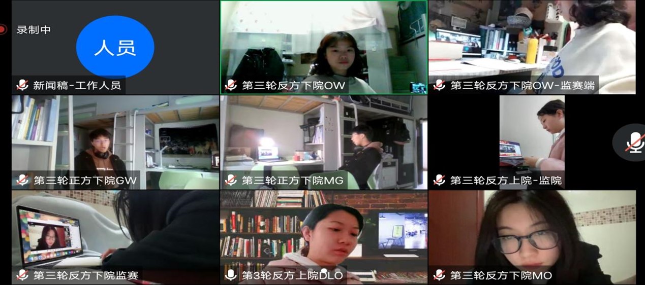 初赛分四个赛场同时拉开帷幕,进行四轮比拼。选手们立足己方论点,以事实为依据,以实例为参考,凭借丰富的知识储备,据理力争地阐述观点,各方辩手你来我往、毫不相让,时而旁征博引,时而慷慨激昂,使环境安静的线上赛场高潮迭起。经过一番激烈交锋,各赛场的前4名选手入围复赛。
