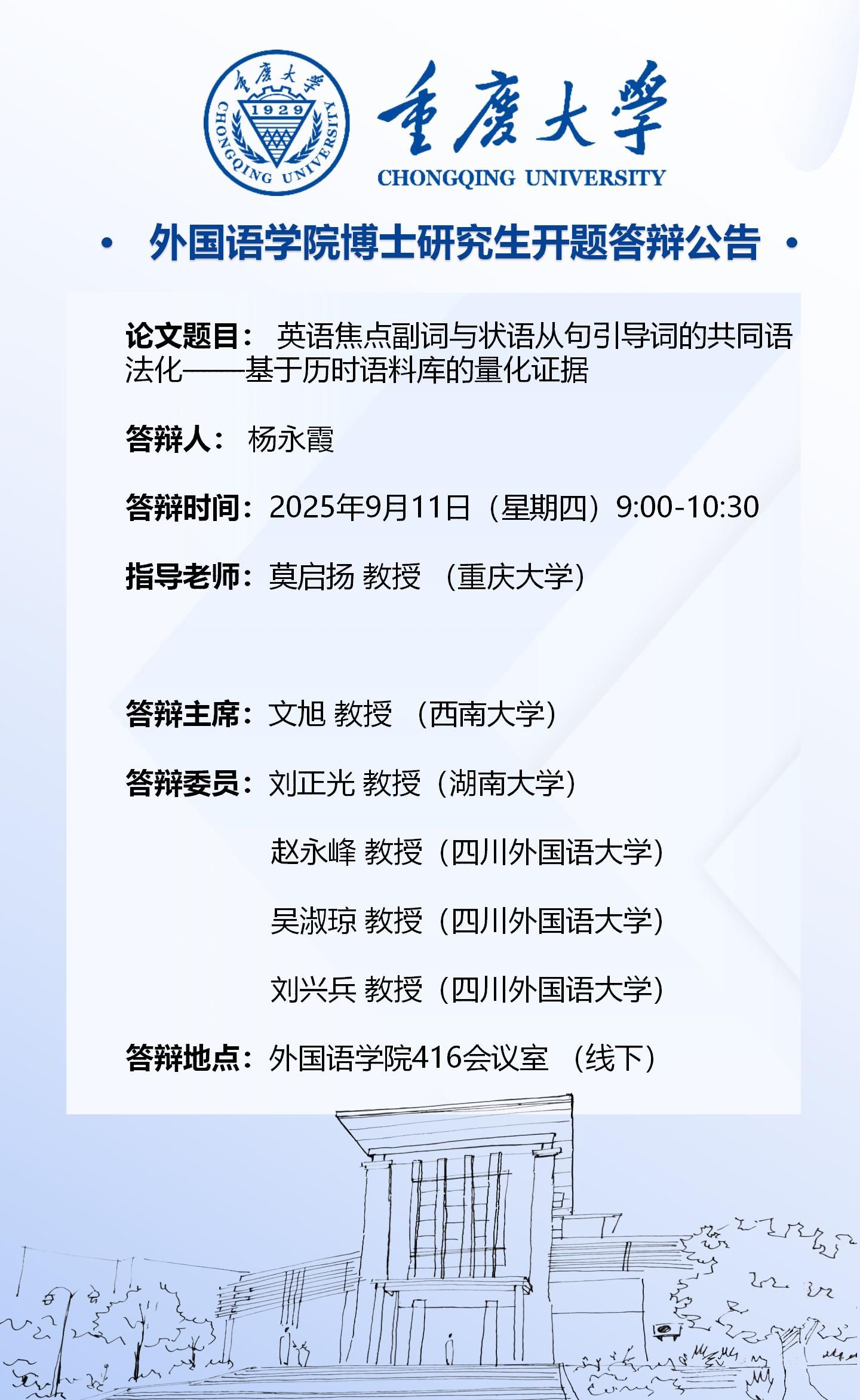 反差婊 2023级外国语言文学专业(语言学方向)博士开题答辩安排-9月11日